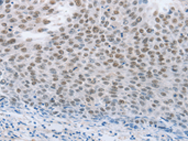 The image is immunohistochemistry of paraffin-embedded Human colon cancer tissue using P04382(NEUROG2 Antibody) at dilution 1/15. (Original magnification: ×200) |