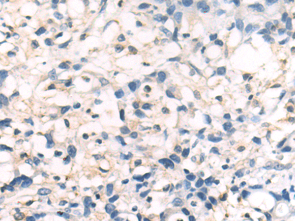 The image is immunohistochemistry of paraffin-embedded Human cervical cancer tissue using P11278(NFKB2 Antibody) at dilution 1/50. (Original magnification: ×200) |