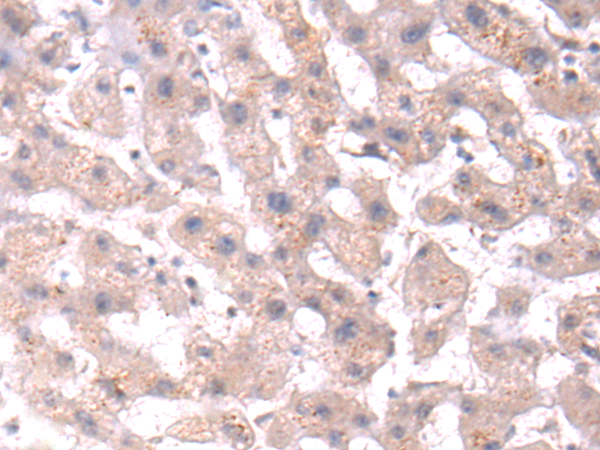 The image is immunohistochemistry of paraffin-embedded Human liver cancer tissue using P03743(NGF Antibody) at dilution 1/50. (Original magnification: ×200) |