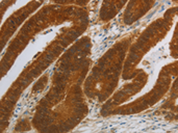 The image is immunohistochemistry of paraffin-embedded Human colon cancer tissue using P11283(NIT2 Antibody) at dilution 1/40. (Original magnification: ×200) |