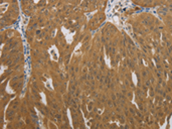 The image is immunohistochemistry of paraffin-embedded Human ovarian cancer tissue using P11283(NIT2 Antibody) at dilution 1/40. (Original magnification: ×200) |