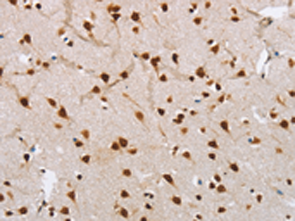 The image is immunohistochemistry of paraffin-embedded Human brain tissue using P11573(NLRP7 Antibody) at dilution 1/60. (Original magnification: ×200) |