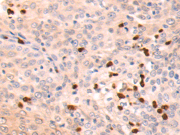 The image is immunohistochemistry of paraffin-embedded Human cervical cancer tissue using P04390(NOTCH1 Antibody) at dilution 1/50. (Original magnification: ×200) |