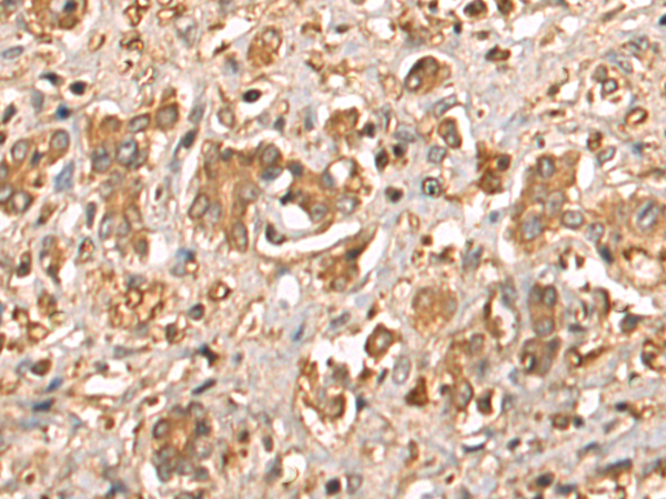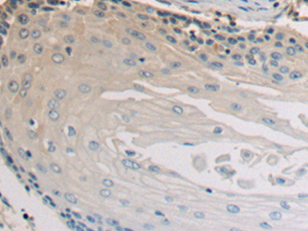 The image is immunohistochemistry of paraffin-embedded Human esophagus cancer tissue using P04393(NOTCH4 Antibody) at dilution 1/30. (Original magnification: ×200) |