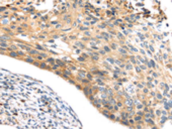 The image is immunohistochemistry of paraffin-embedded Human esophagus cancer tissue using P11993(NOX3 Antibody) at dilution 1/30. (Original magnification: ×200) |