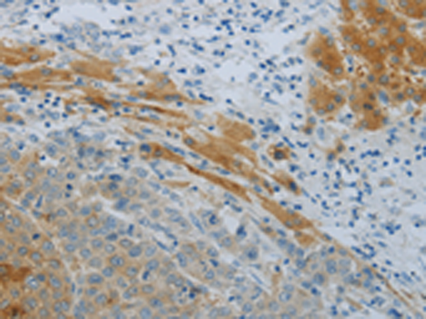 The image is immunohistochemistry of paraffin-embedded Human liver cancer tissue using P11061(NPHS1 Antibody) at dilution 1/40. (Original magnification: ×200) |