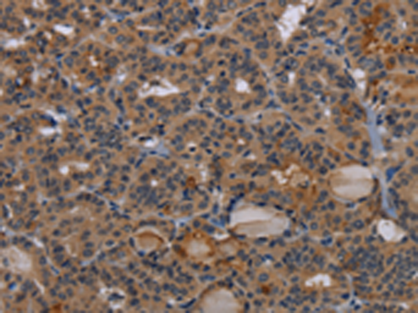 The image is immunohistochemistry of paraffin-embedded Human thyroid cancer tissue using P11996(NPRL2 Antibody) at dilution 1/50. (Original magnification: ×200) |