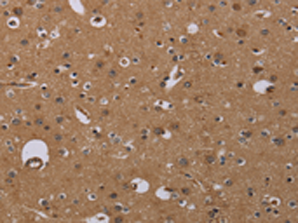 The image is immunohistochemistry of paraffin-embedded Human brain tissue using P05111(NPRL2 Antibody) at dilution 1/40. (Original magnification: ×200) |