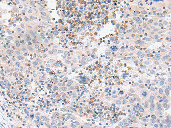 The image is immunohistochemistry of paraffin-embedded Human cervical cancer tissue using P04394(NPY1R Antibody) at dilution 1/30. (Original magnification: ×200) |