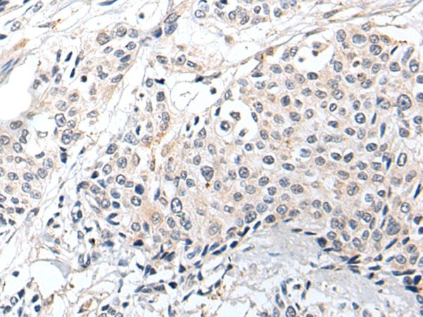 The image is immunohistochemistry of paraffin-embedded Human prostate cancer tissue using P05806(NRG1 Antibody) at dilution 1/20. (Original magnification: ×200) |