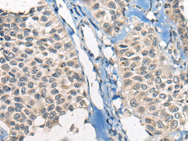 The image is immunohistochemistry of paraffin-embedded Human liver cancer tissue using P13133(NRG2 Antibody) at dilution 1/20. (Original magnification: ×200) |