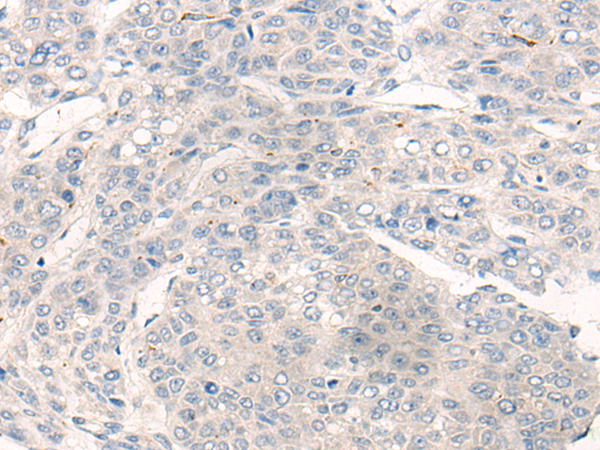 The image is immunohistochemistry of paraffin-embedded Human esophagus cancer tissue using P04622(NRG2 Antibody) at dilution 1/25. (Original magnification: ×200) |