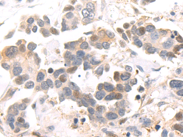 The image is immunohistochemistry of paraffin-embedded Human colorectal cancer tissue using P04648(NSMCE3 Antibody) at dilution 1/55. (Original magnification: ×200) |