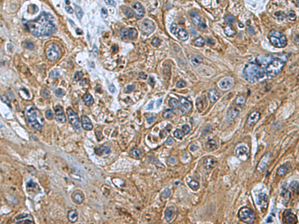 The image is immunohistochemistry of paraffin-embedded Human esophagus cancer tissue using P11654(NUF2 Antibody) at dilution 1/60. (Original magnification: ×200) |