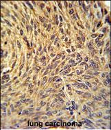 NUP210 Antibody (N-term) (Cat. #P30592) immunohistochemistry analysis in formalin fixed and paraffin embedded human lung carcinoma followed by peroxidase conjugation of the secondary antibody and DAB staining. This data demonstrates the use of the NUP210 Antibody (N-term) for immunohistochemistry. Clinical relevance has not been evaluated. |