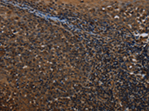 The image is immunohistochemistry of paraffin-embedded Human tonsil tissue using P05119(OMG Antibody) at dilution 1/30. (Original magnification: ×200) |