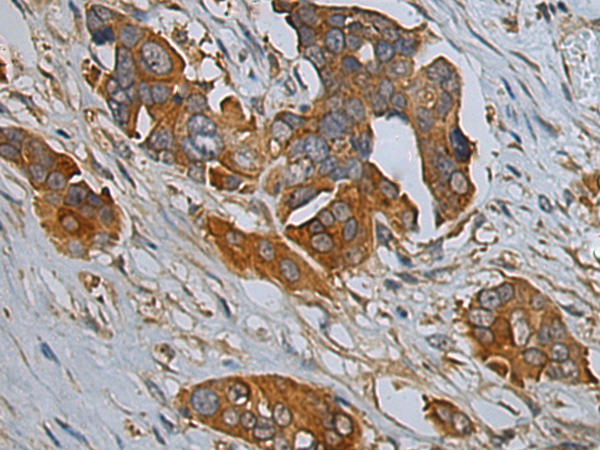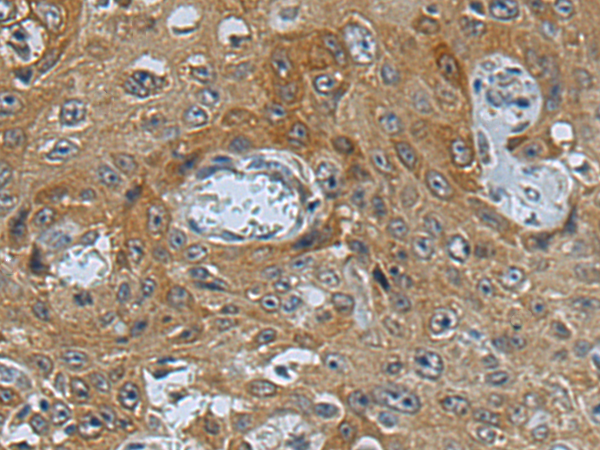 The image is immunohistochemistry of paraffin-embedded Human esophagus cancer tissue using P03526(OXSM Antibody) at dilution 1/130. (Original magnification: ×200) |