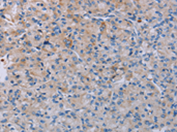 The image is immunohistochemistry of paraffin-embedded Human ovarian cancer tissue using P05128(P2RY2 Antibody) at dilution 1/40. (Original magnification: ×200) |