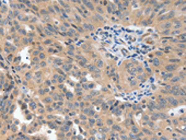 The image is immunohistochemistry of paraffin-embedded Human ovarian cancer tissue using P04159(P2RY6 Antibody) at dilution 1/40. (Original magnification: ×200) |