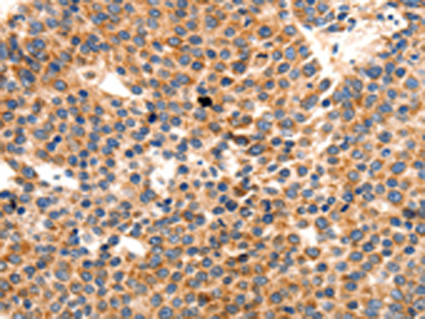 The image is immunohistochemistry of paraffin-embedded Human liver cancer tissue using P04074(PAFAH1B1 Antibody) at dilution 1/25. (Original magnification: ×200) |