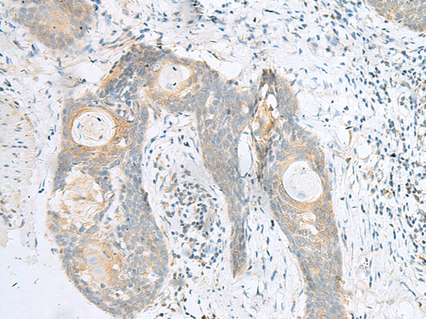 The image is immunohistochemistry of paraffin-embedded Human esophagus cancer tissue using P06680(PAIP2 Antibody) at dilution 1/20. (Original magnification: ×200) |