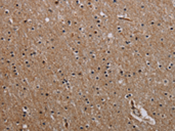 The image is immunohistochemistry of paraffin-embedded Human brain tissue using P12028(PCDHAC1 Antibody) at dilution 1/30. (Original magnification: ×200) |