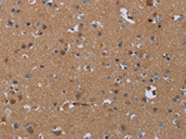 The image is immunohistochemistry of paraffin-embedded Human brain tissue using P12034(PDE4A Antibody) at dilution 1/40. (Original magnification: ×200) |