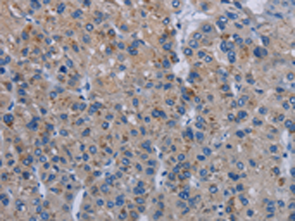 The image is immunohistochemistry of paraffin-embedded Human liver cancer tissue using P12035(PDE4D Antibody) at dilution 1/20. (Original magnification: ×200) |
