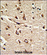 Formalin-fixed and paraffin-embedded human brain tissue reacted with PDIA6 Antibody (Center K159), which was peroxidase-conjugated to the secondary antibody, followed by DAB staining. This data demonstrates the use of this antibody for immunohistochemistry; clinical relevance has not been evaluated. |