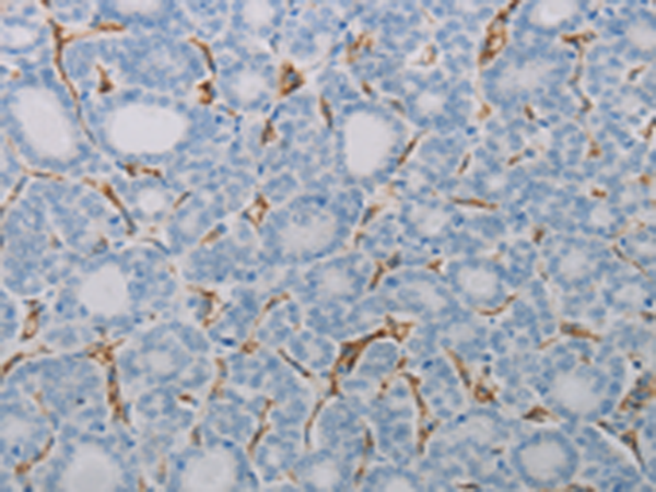 The image is immunohistochemistry of paraffin-embedded Human thyroid cancer tissue using P04185(PECAM1 Antibody) at dilution 1/40. (Original magnification: ×200) |