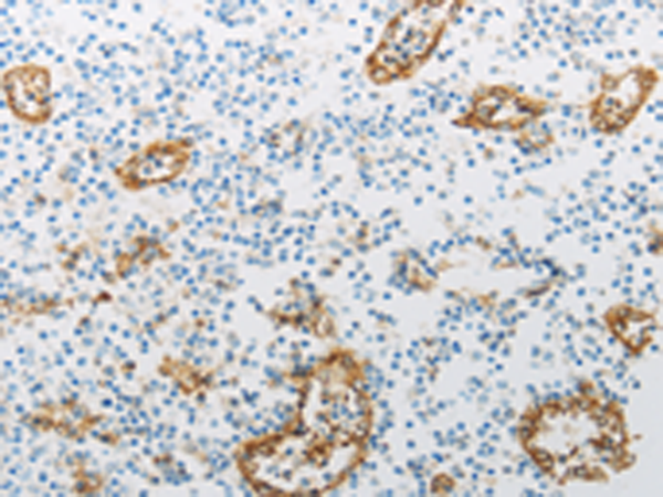 The image is immunohistochemistry of paraffin-embedded Human renal cancer tissue using P11100(PECAM1 Antibody) at dilution 1/25. (Original magnification: ×200) |