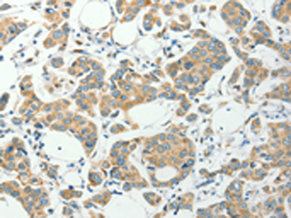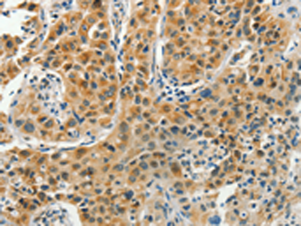 The image is immunohistochemistry of paraffin-embedded Human lung cancer tissue using P11499(PFDN6 Antibody) at dilution 1/35. (Original magnification: ×200) |