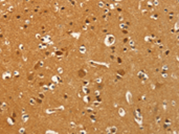 The image is immunohistochemistry of paraffin-embedded Human brain tissue using P04642(PFKFB1 Antibody) at dilution 1/60. (Original magnification: ×200) |