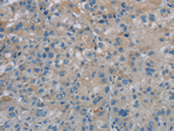 The image is immunohistochemistry of paraffin-embedded Human liver cancer tissue using P12047(PGLYRP1 Antibody) at dilution 1/40. (Original magnification: ×200) |