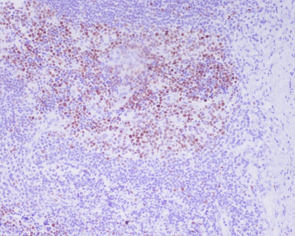 Immunohistochemistry analysis of paraffin-embedded Human tonsil using Phospho-Histone H3 (T3) antibody.High-pressure and temperature Sodium Citrate pH 6.0 was used for antigen retrieval. |