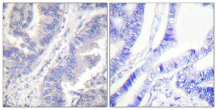 Immunohistochemistry analysis of paraffin-embedded Human lung cancer using Phospho-Syk (Tyr348) antibody.High-pressure and temperature Sodium Citrate pH 6.0 was used for antigen retrieval. Sample with blocking peptide on the right. |