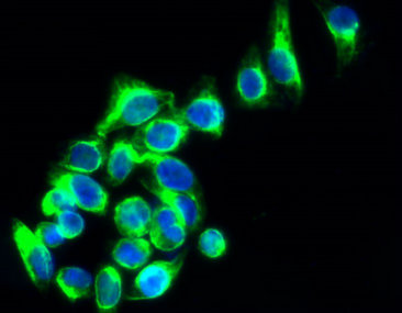 Immunofluorescence analysis of Phospho-TGF beta Receptor I (Ser165) in HepG2 cells using Phospho-TGF beta Receptor I (Ser165) antibody(green). |