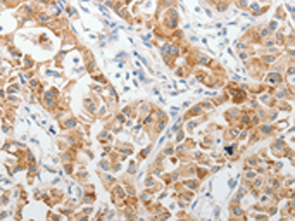 The image is immunohistochemistry of paraffin-embedded Human lung cancer tissue using P11093(PIBF1 Antibody) at dilution 1/60. (Original magnification: ×200) |