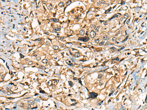 The image is immunohistochemistry of paraffin-embedded Human prostate cancer tissue using P12976(PIBF1 Antibody) at dilution 1/25. (Original magnification: ×200) |