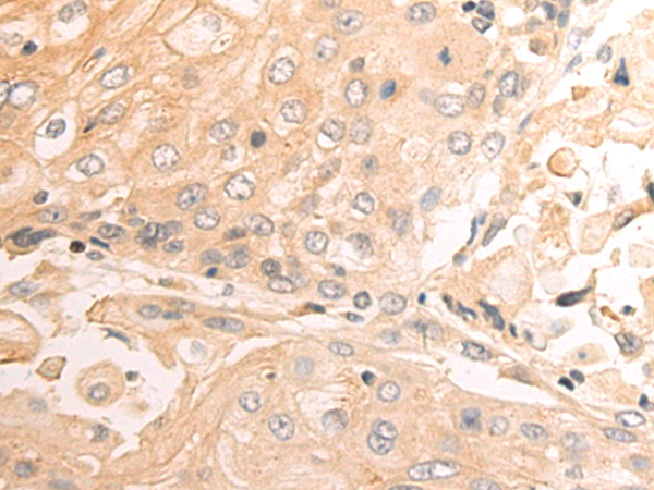 The image is immunohistochemistry of paraffin-embedded Human esophagus cancer tissue using P03566(PIK3R1 Antibody) at dilution 1/50. (Original magnification: ×200) |