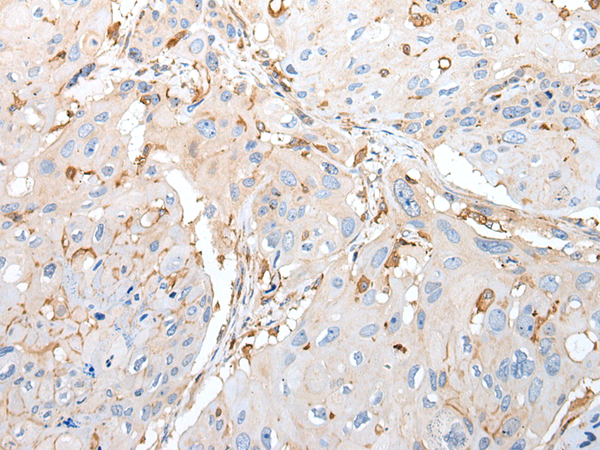 The image is immunohistochemistry of paraffin-embedded Human esophagus cancer tissue using P12679(PLAAT3 Antibody) at dilution 1/20. (Original magnification: ×200) |