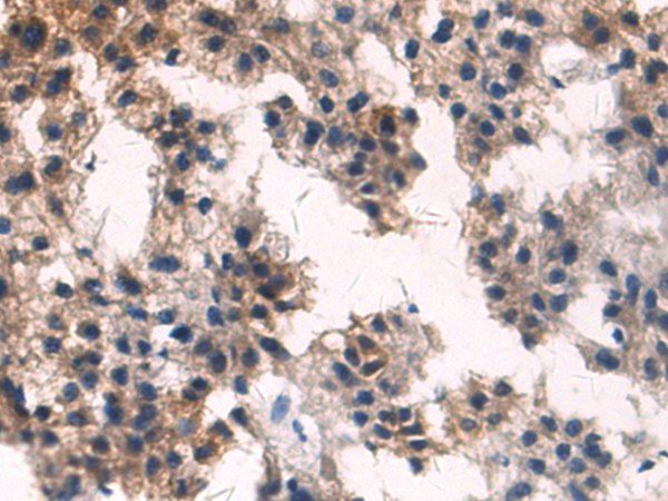 The image is immunohistochemistry of paraffin-embedded Human liver cancer tissue using P13814(PLCE1 Antibody) at dilution 1/50. (Original magnification: ×200) |