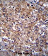 PLEKHA4 Antibody (N-term) (Cat. #P30998)immunohistochemistry analysis in formalin fixed and paraffin embedded human liver tissue followed by peroxidase conjugation of the secondary antibody and DAB staining.This data demonstrates the use of PLEKHA4 Antibody (N-term) for immunohistochemistry. Clinical relevance has not been evaluated. |