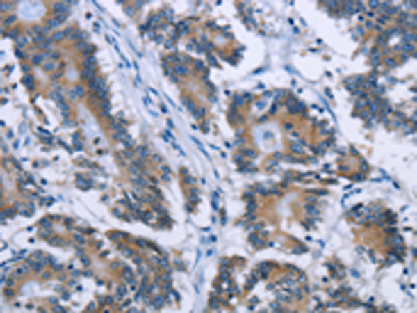 The image is immunohistochemistry of paraffin-embedded Human colon cancer tissue using P12041(PLIN1 Antibody) at dilution 1/30. (Original magnification: ×200) |