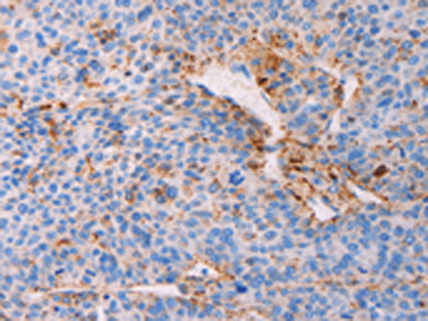 The image is immunohistochemistry of paraffin-embedded Human liver cancer tissue using P11432(PLIN2 Antibody) at dilution 1/25. (Original magnification: ×200) |