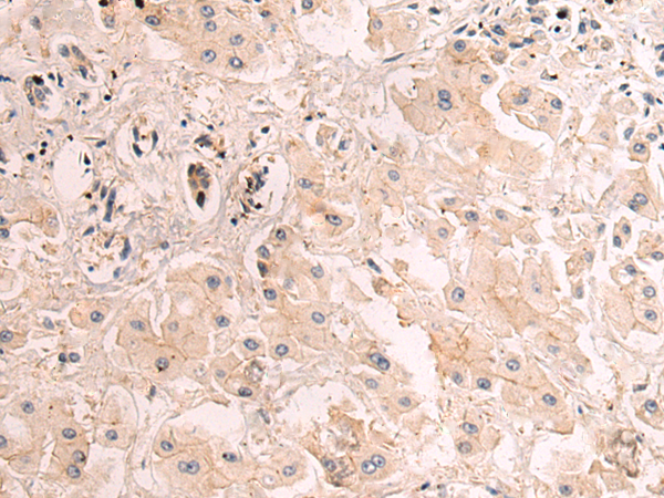 The image is immunohistochemistry of paraffin-embedded Human liver cancer tissue using P03579(PLOD3 Antibody) at dilution 1/105. (Original magnification: ×200) |