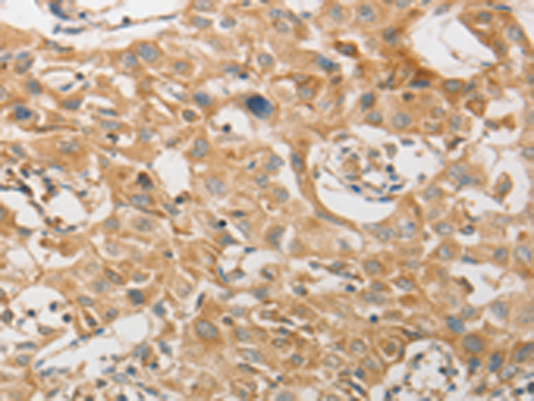 The image is immunohistochemistry of paraffin-embedded Human liver cancer tissue using P04162(PLPP1 Antibody) at dilution 1/50. (Original magnification: ×200) |
