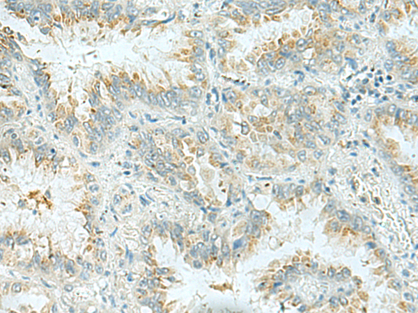 The image is immunohistochemistry of paraffin-embedded Human lung cancer tissue using P11307(PLPPR5 Antibody) at dilution 1/30. (Original magnification: ×200) |