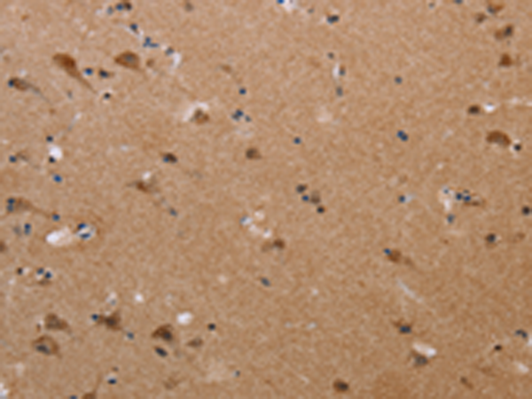 The image is immunohistochemistry of paraffin-embedded Human brain tissue using P05172(PLXNA4 Antibody) at dilution 1/50. (Original magnification: ×200) |