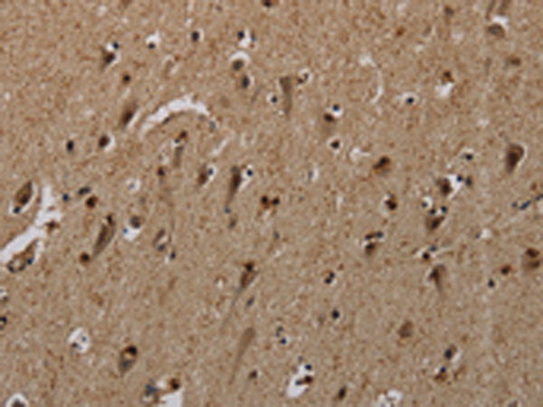 The image is immunohistochemistry of paraffin-embedded Human brain tissue using P12055(PNN Antibody) at dilution 1/50. (Original magnification: ×200) |